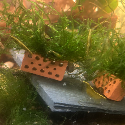 – Les petits trous de la brique peuvent abriter les très jeunes crevettes et écrevisses naines.